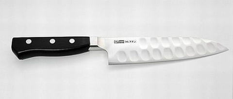 肉、魚、野菜の刻み、スライス、皮むきにと何にでも万能に使える家庭用三徳包丁です。 柄は、積層強化木を使用し、ツバ付きなので柄の付け根の強度が増し丈夫で、汚れもたまりにくい仕様です。同じ刃渡りの三徳817に比べ刃の幅が少し細身です。(刃幅の一番広い部分で比較して、約1p細身)刃渡り17p