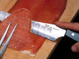 ★サーモンスライサー …Gタイプ刃とTタイプ刃を取り揃えておりなす。キングサーモンのスライスやローストビーフ